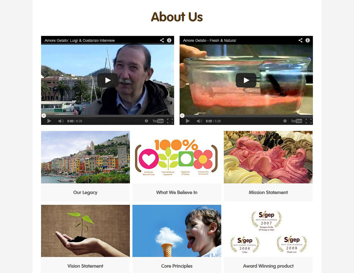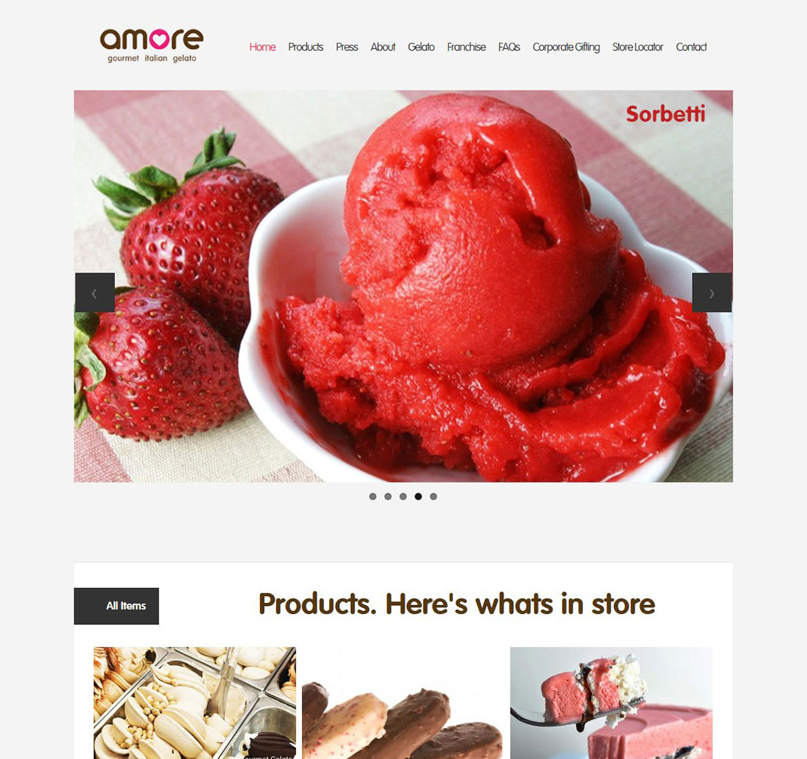 Amore Gelato is responsively designed to render with any viewing device whether it is desktops, tablets or mobile. What’s more, Amore is also a one page website falling in line with modern web-design practices. All the pages are diligently displayed on a single page with smooth scroll functionality. A blend of visual aesthetics and appropriate content-flow is achieved without compromising a bit on eventual user experience.