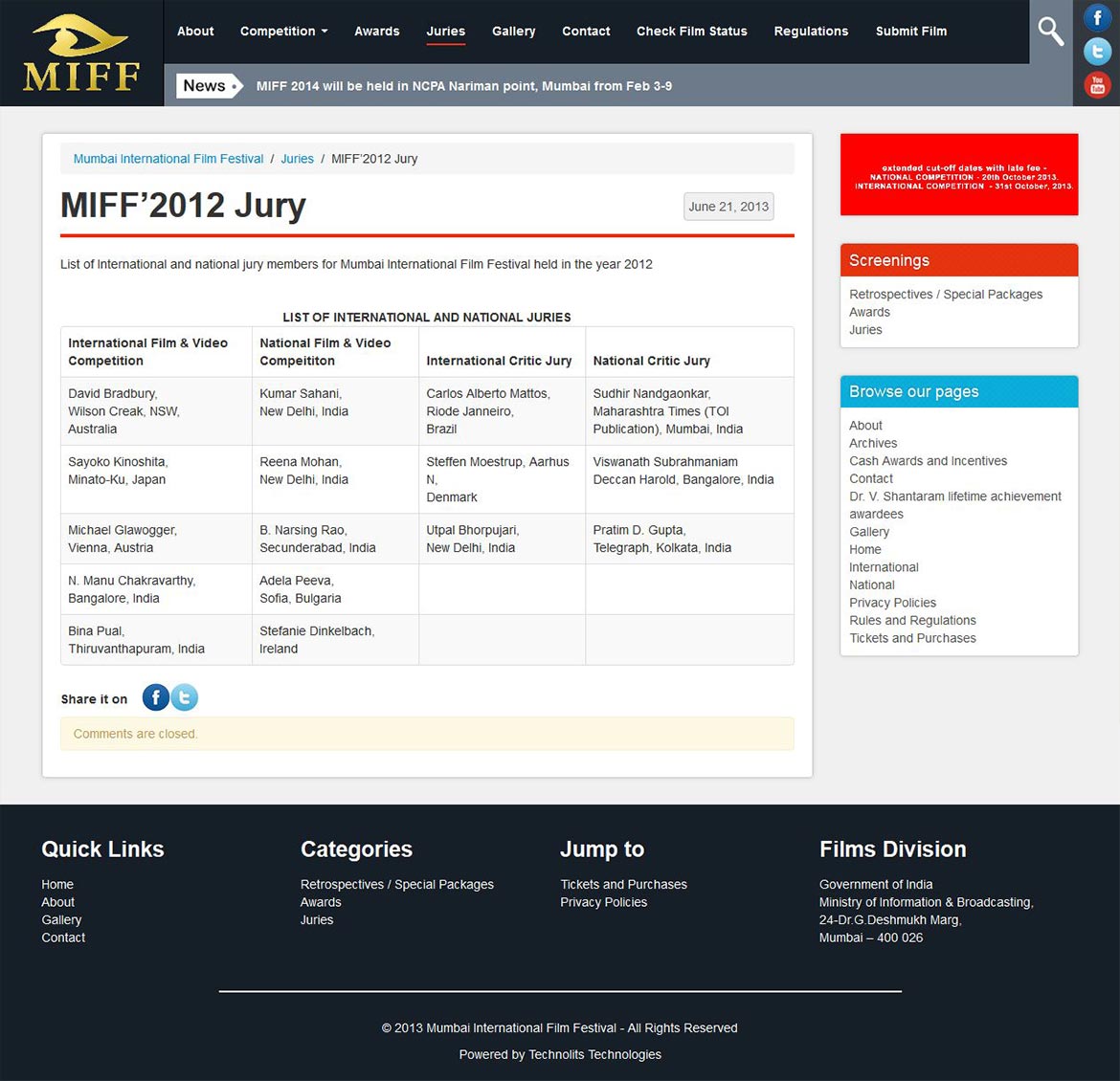 MIFF, being one of India’s topmost film festivals, receives a lot of entries with regards to movie submissions, documentaries, animations and more. With a view to digitalize this process, we developed a comprehensive movie submission form on the website which caters to the entry prospects as well as the organizers. The form has been tailor coded to make the entry submission process as simple as possible. This process is integrated with online payments and the respective data is documented in the powerful WordPress backend.