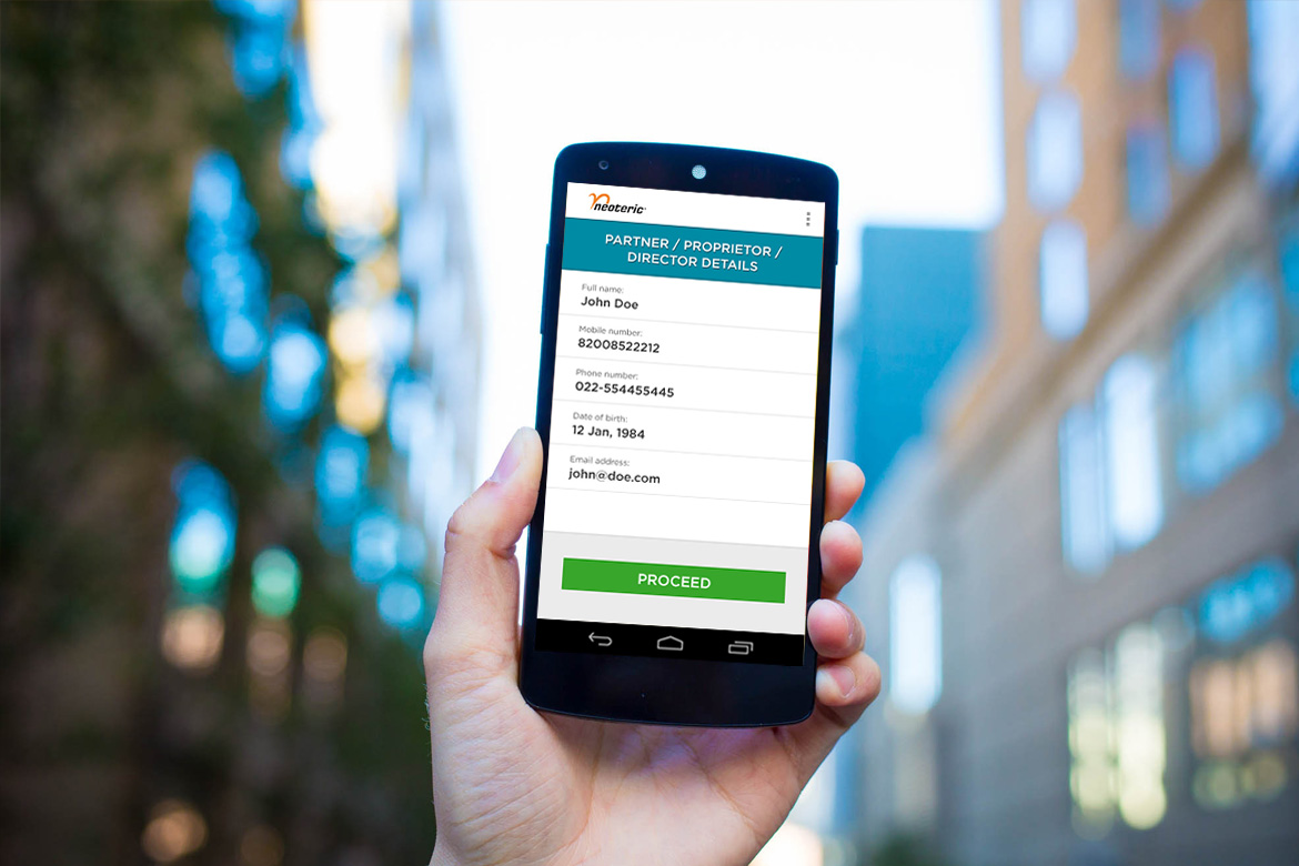 There’s a growing need of a KYC mobile application in order to replace the manual system of collecting data from vendors/customers via paper forms. We built a mobile application that automates the process of collecting and storing information on a centralized database. This paperless systems also allows Neoteric to collect customer information from anywhere, anytime by just pulling out a smart phone.