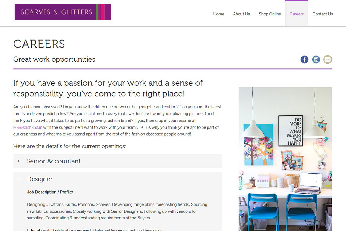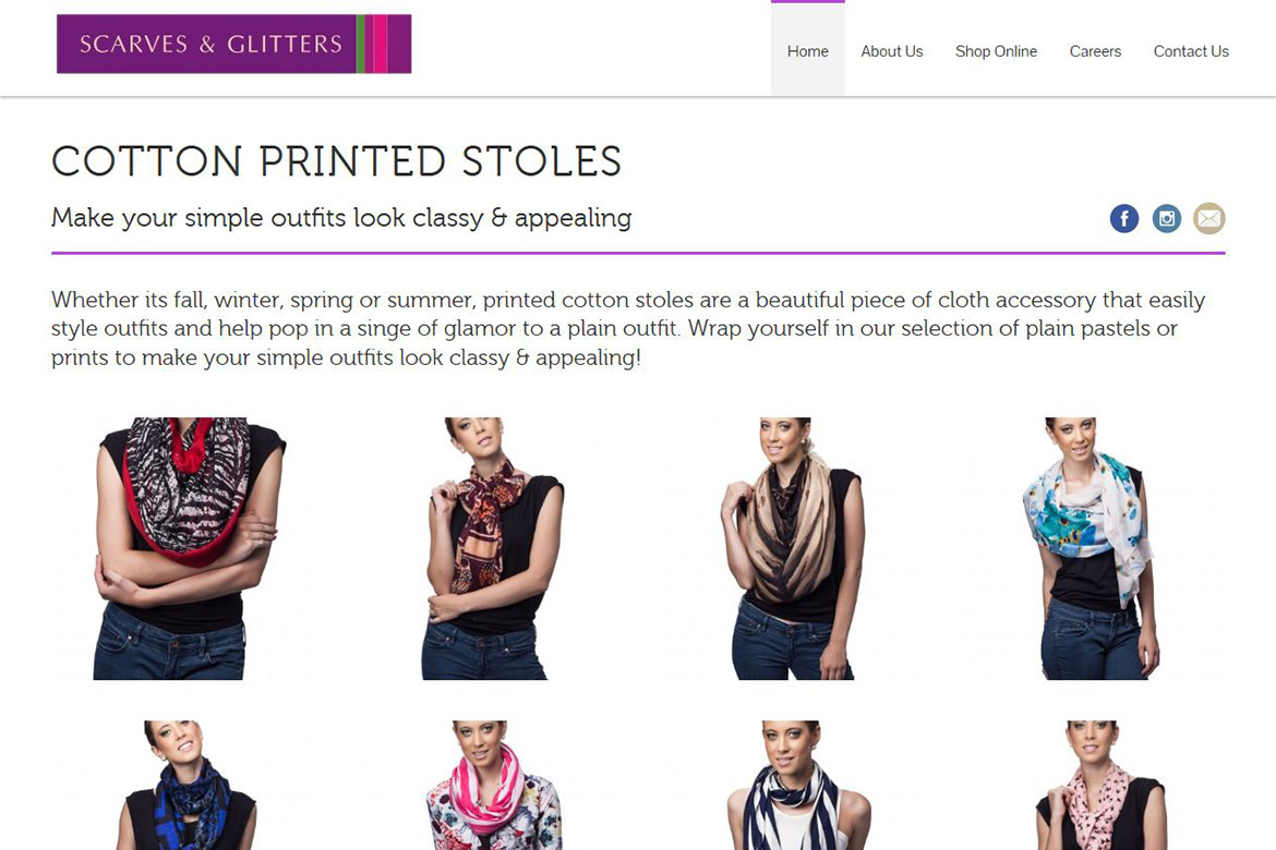 Scarves & Glitters in India’s leading brand specializing in Scarves, Tunics and accessories for Indian market. We build a WordPress CMS website which opens seamlessly across all devices. The website primarily showcases the product catalog of Scarves & Glitters. The website features a modernistic tile based look on the home page.